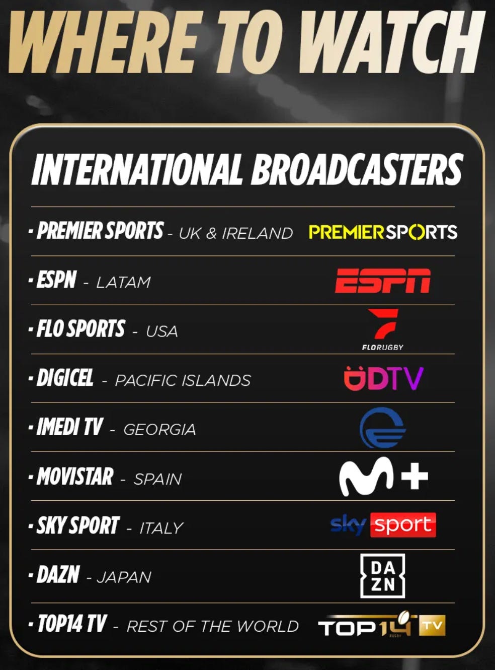 Interestingly, viewers in certain countries will have access to both the local broadcaster and TOP 14 Rugby TV – for example in Japan DAZN will broadcast 3/4 fixtures per round, with the remaining matches available via PPV on TOP 14 Rugby TV. This is not the case in the UK and Ireland, where Premier Sports’ coverage will remain exclusive. Full details of the availability of TOP 14 Rugby TV can be found here.